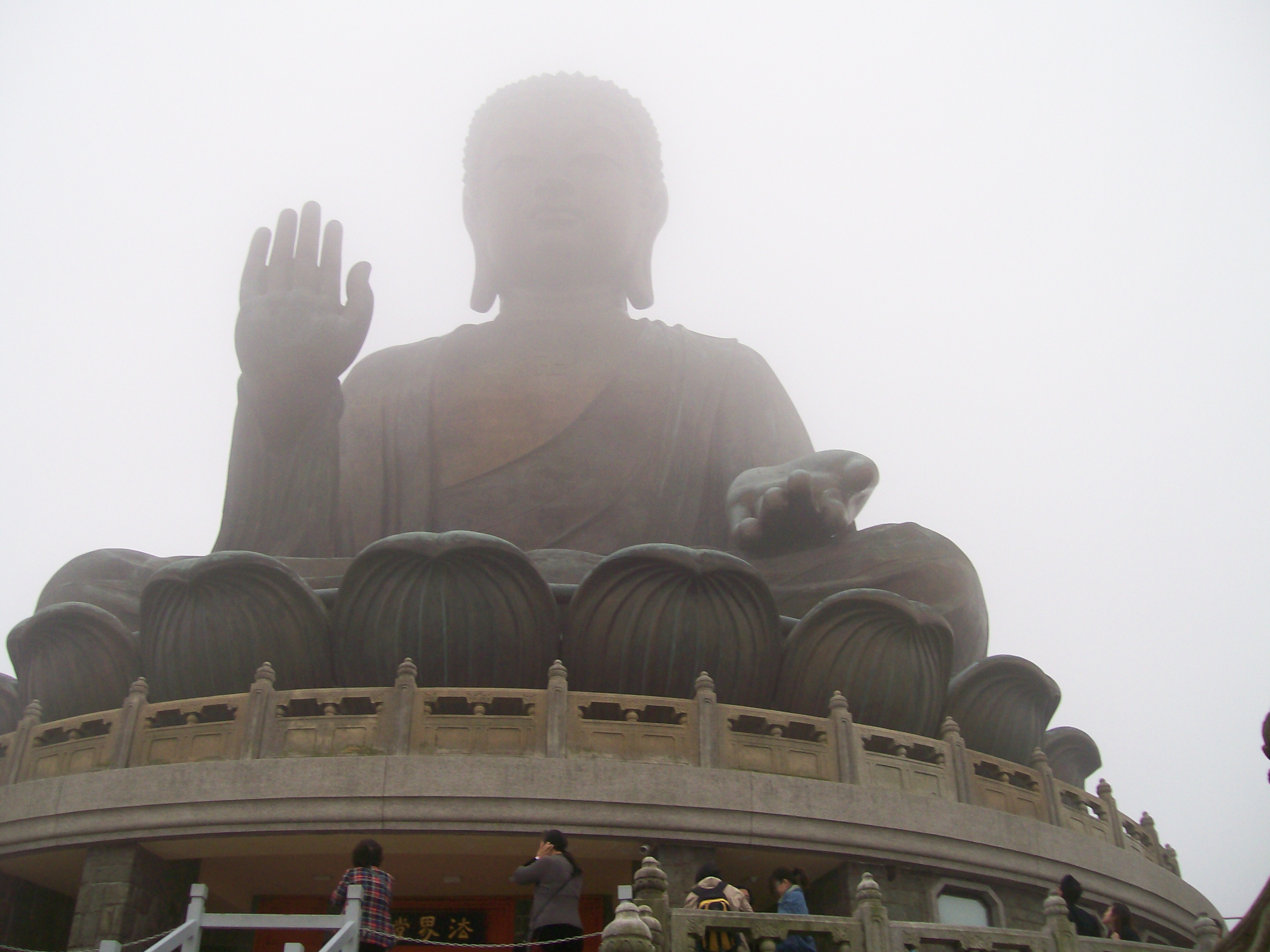 A bigger event, in both senses, was our trip over to Lantau and our ride on the aerial tramway to visit the Big Buddha. He was constructed in 1993, through joint corporate and private efforts, to watch over Hong Kong. As we rode in one of the cars above the green hillsides, he was up in the clouds.