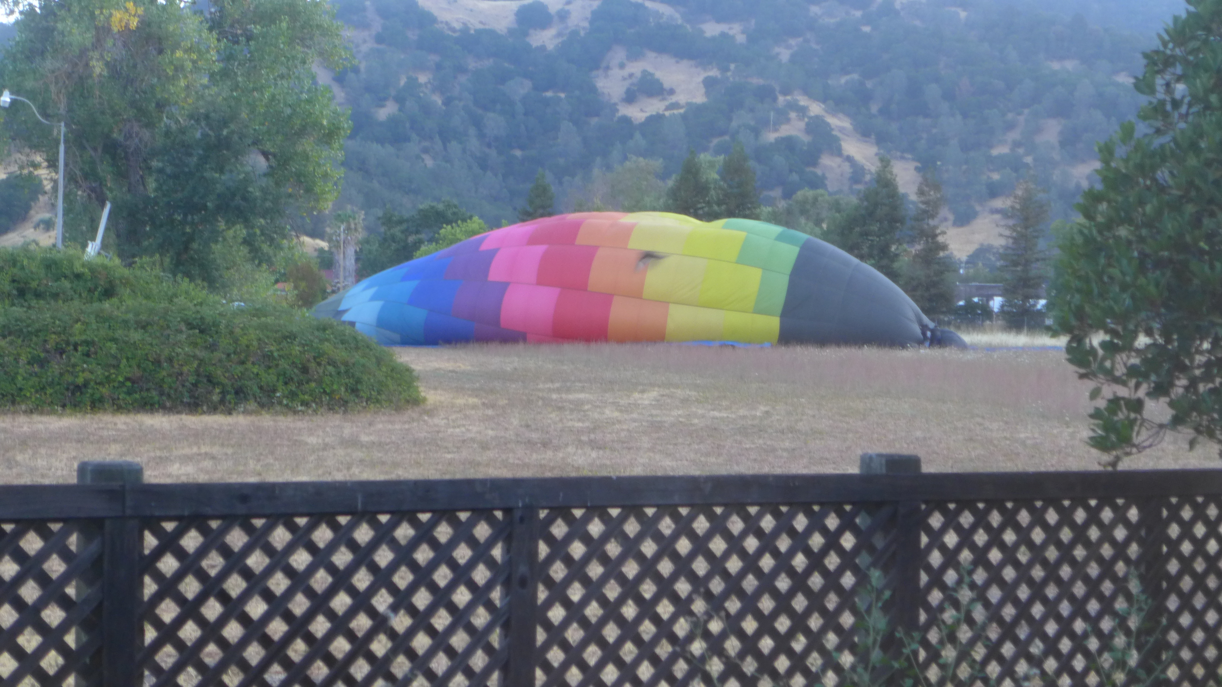 I continued to watch until the balloon left the ground. Two people remained behind to fold up the ground cloths which had protected the balloon from the dirt.