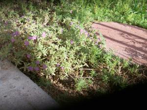 In this harsh desert climate I’ve had little luck at the kind of gardening I did in Pennsylvania. Even when I focus on heat-hardy plants, my seedlings fail to take hold and my vegetables die off before producing.  I’m dependent on nature and native plants to fill my yard.  After the poppies of early spring there were “wire lettuce” with its wee pink flowers, and stickweed, currently called “Velcro plant,” whose pale yellow flowers are best appreciated from a distance.  Then things got hot and dry.  After the rains come, purple mat and limoncillo arrive to give me joy.  They are a gift I did nothing to earn.